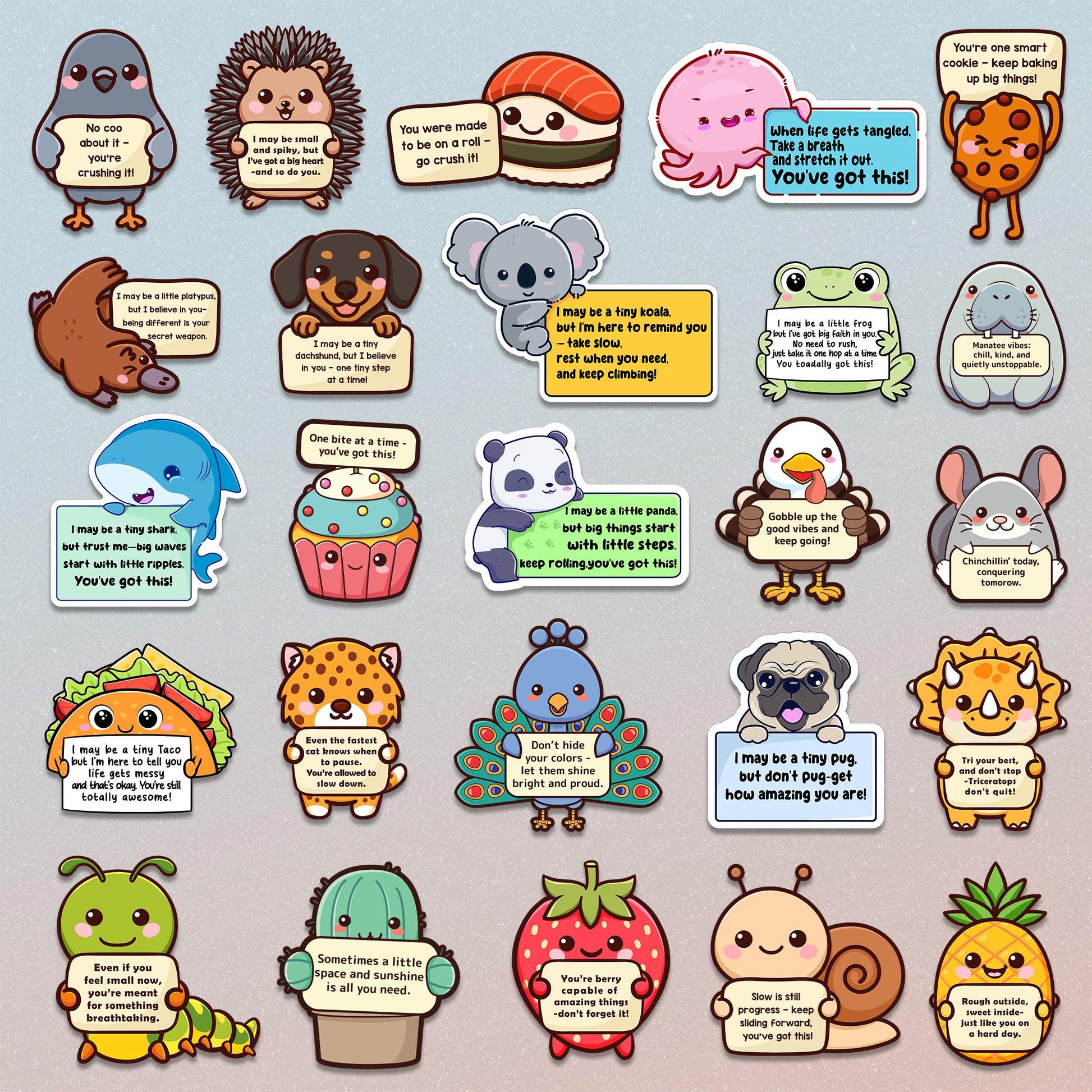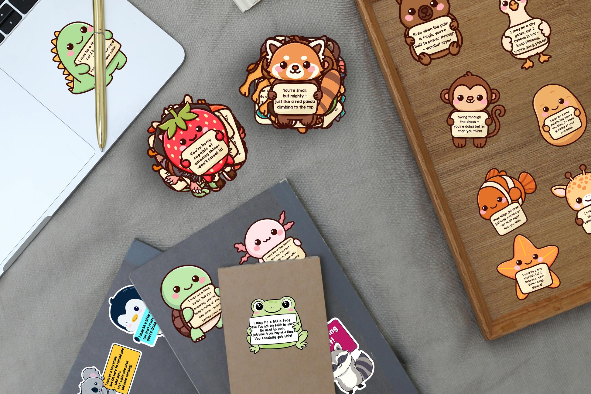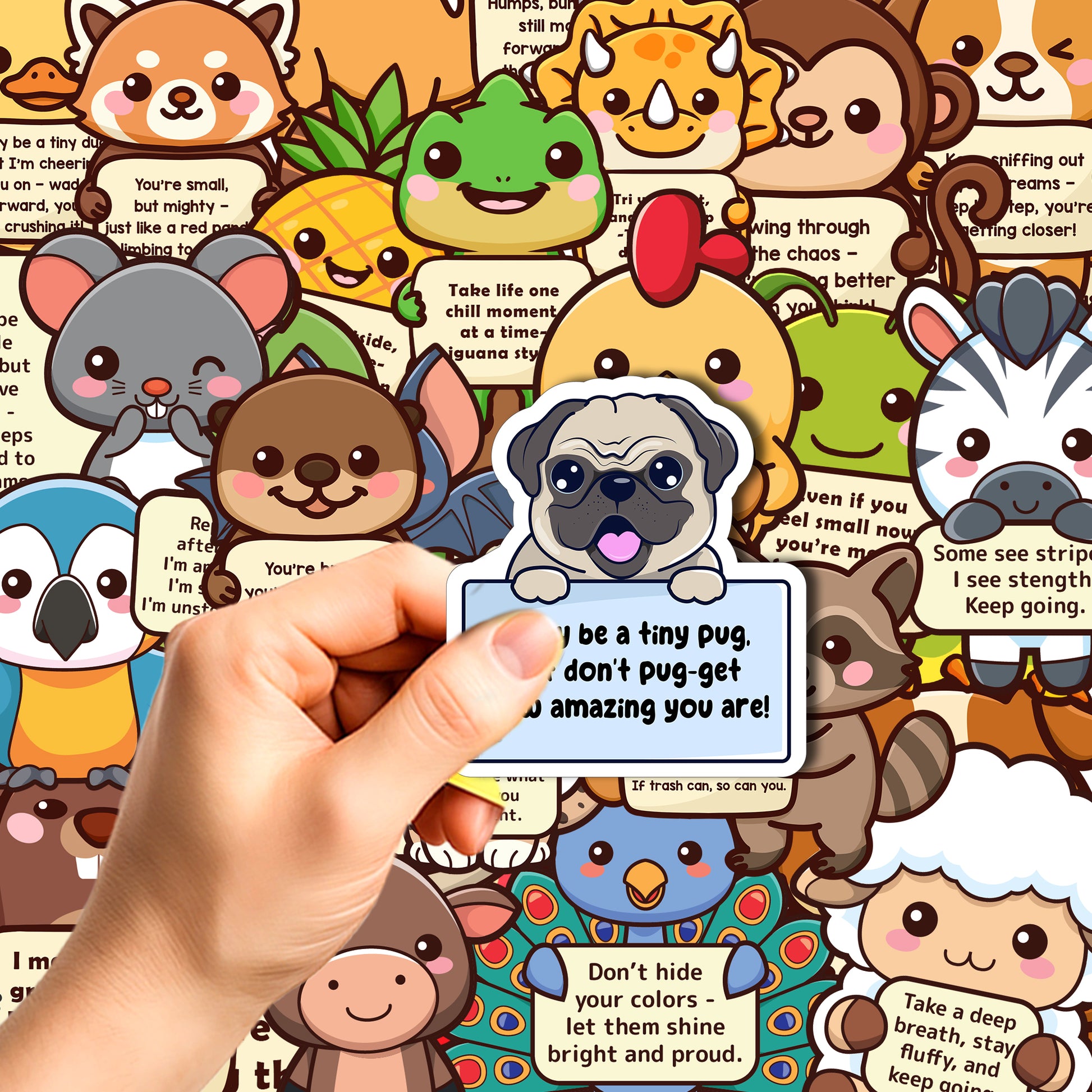 100PCS Emotional Support Animal Stickers – Affirmation Sticker Pack for Adults or Kids Cute Inspirational Buddies for Water Bottles, Laptops, Phones, Positive Quote Vinyl