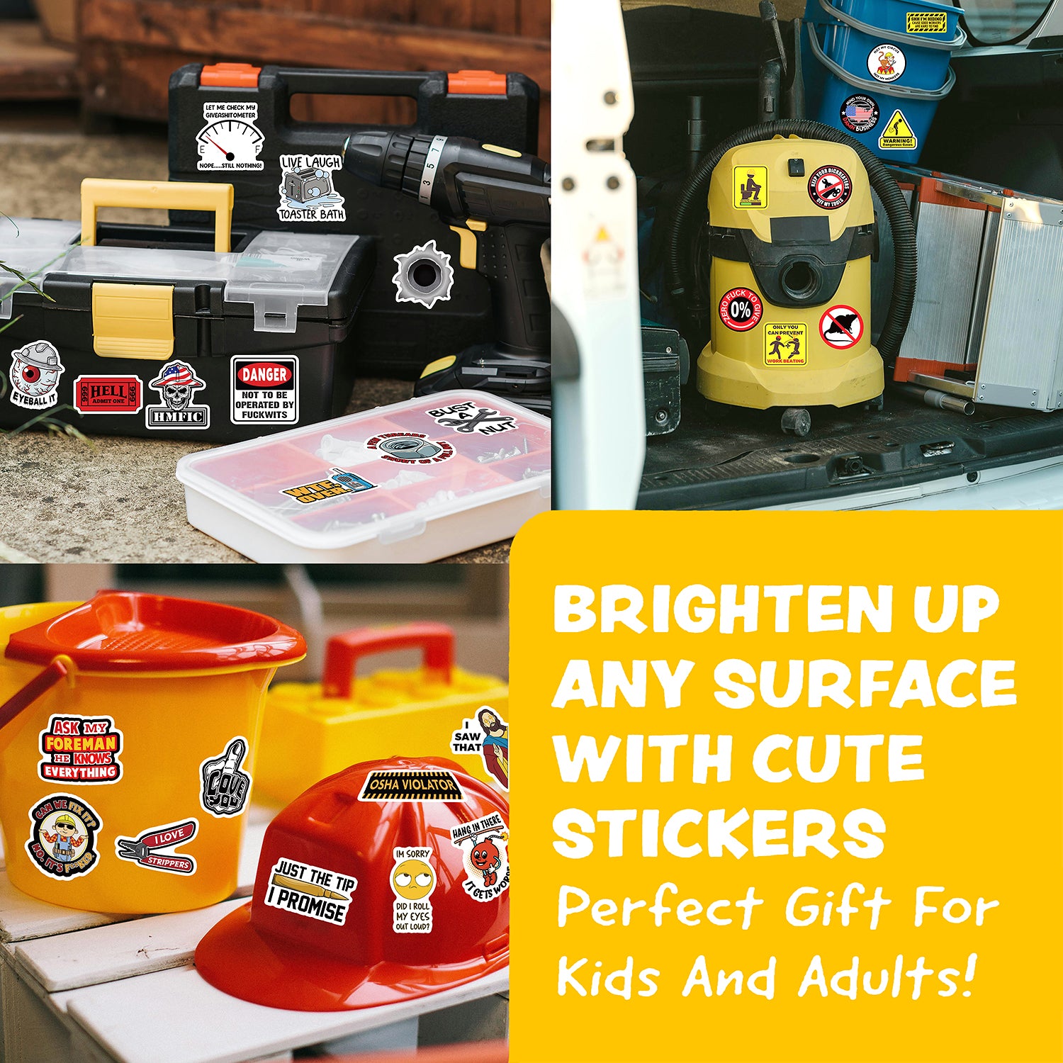 - 💪 TOUGH, VERSATILE VINYL STICKERS: Premium Quality & Waterproof, Built to Last in Any Environment, Adheres Firmly to Curved or Domed Surfaces like Hard Hats, Toolboxes, Welding Helmets, Construction and Electrician Tools, and More.