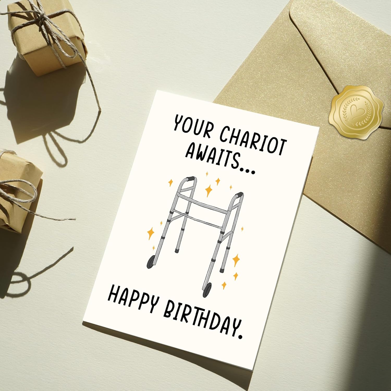 Your chariot awaits - Funny Birthday Card – Hilarious Happy Birthday Cards for Men, Women, Dad, Mom, Brother, Sister, Friends & Family – Unique Greeting Card for Birthday Gifts & Party Decorations